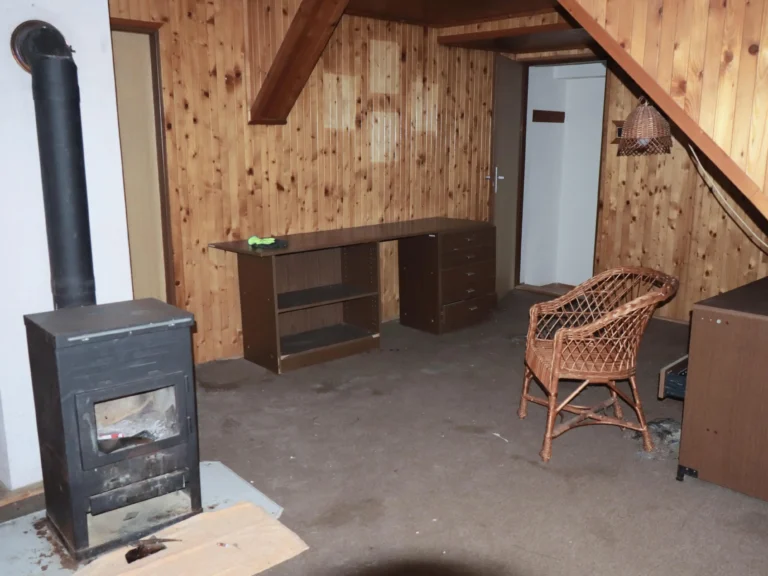 Úprava podkroví pro bezpečné přespání větší skupiny (pevná podlaha, světlo, bezpečný prostor).